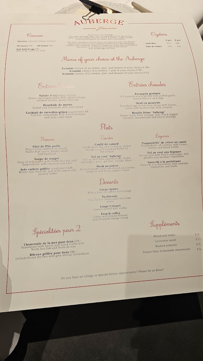 To complement the food, the wine selection at Auberge is thoughtfully curated, with a variety of choices that pair beautifully with the dishes. The Asperges Flamande adds a touch of seasonal elegance to the menu, featuring perfectly cooked asparagus in a light, flavorful sauce.
